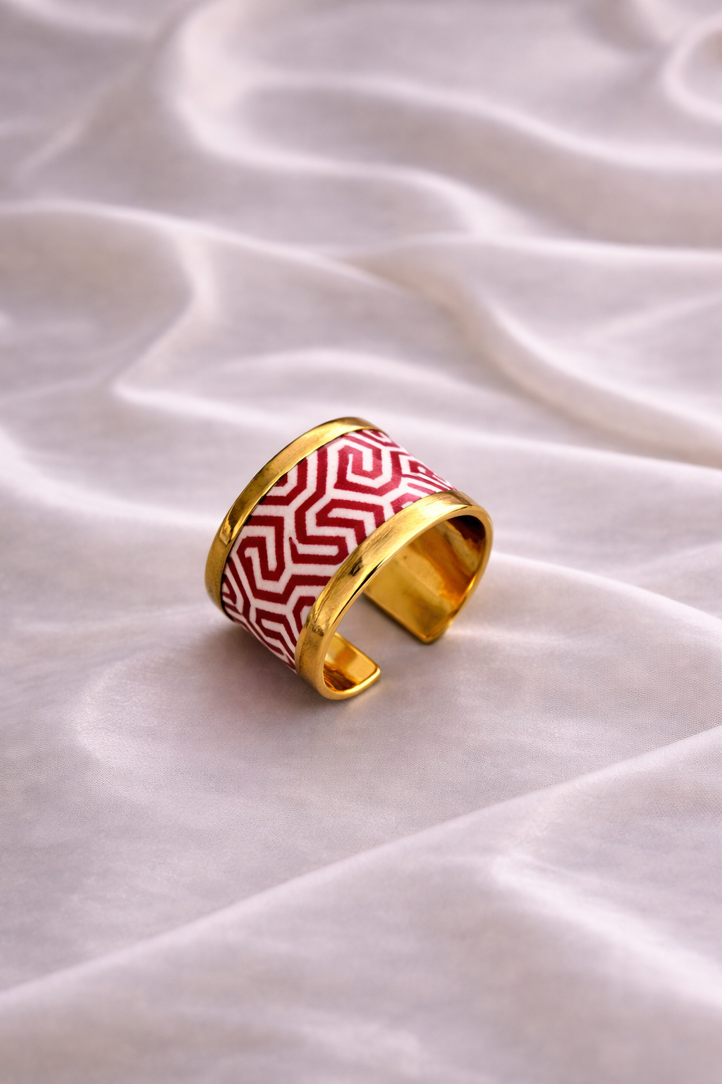 Δαχτυλίδι με σχέδιο λιτό και γεωμετρικό σε κόκκινο χρώμα.